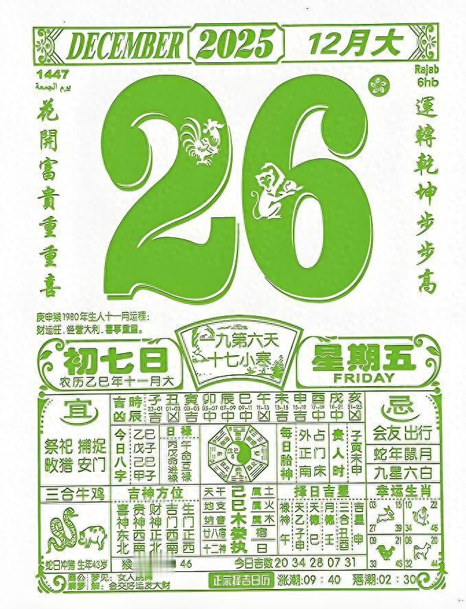 【逐日历本】12月26日, 星期五, 抓日守成, 趋吉避凶。